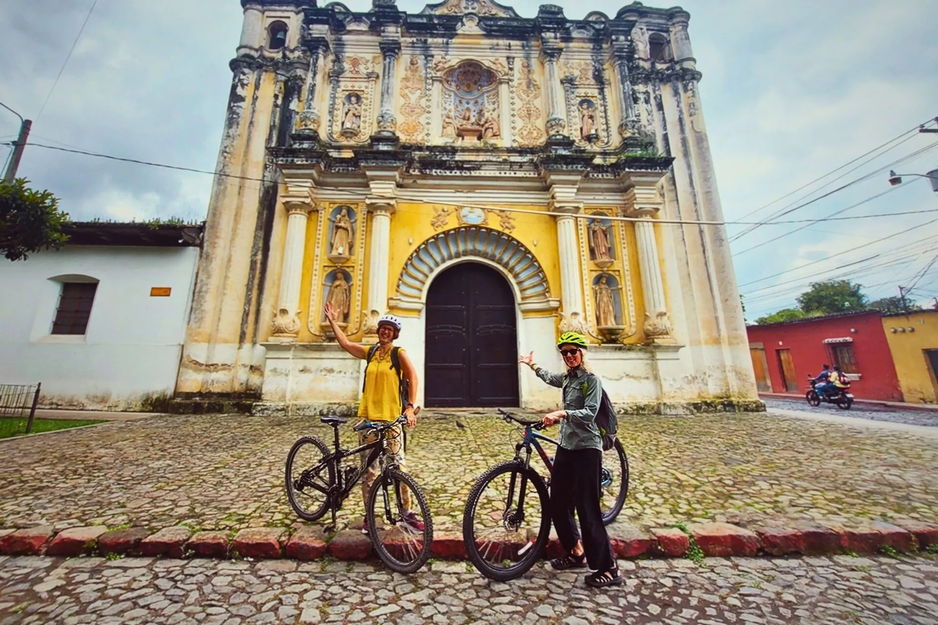 • Start riding through the cobblestone streets of Antigua. Our initial focus will be on the grand colonial churches and convents within the city center.