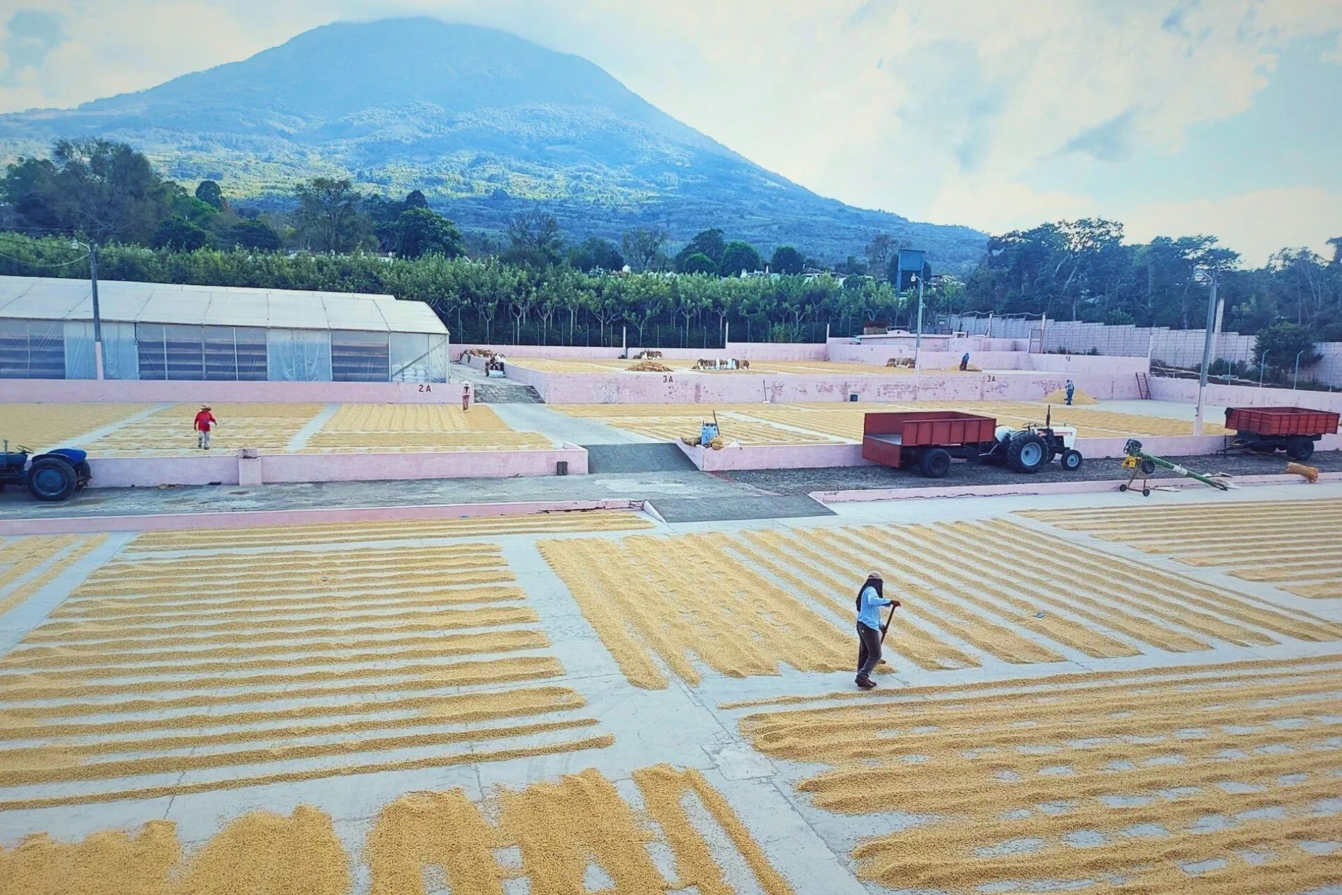 Our first stop is one of Antigua’s finest coffee farms. Among the many options around Antigua, we’ve chosen this particular farm because of its exceptional coffee quality, its use of organic fuels for their machinery, and its lush green surroundings with breathtaking volcano views.